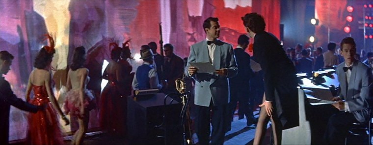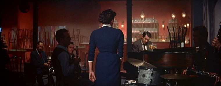Later that evening, at the Downbeat Club where Esther sings for herself and the boys in the band, Esther plays with the ballad “The Man That God Away” not knowing that Norman Maine has found her there and is sitting, watching and listening, in the shadows. Here again Esther makes points with her back, mid tune.