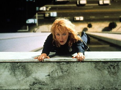 And a final image and connection is inspired by a set design that enchants initially then goes oddly, cheaply, lastingly, unnecessarily wrong. Late in the show we find the evil Green Goblin atop the Chrysler Building — or a nearby building as the Chrysler facade is used as a surface lowered from the ceiling, unfolded with sharp gargoyle edges that catch things, um, such as wires for the flying characters. We have our perspective inverted to start this scene … we in the audience are looking down at the street upstage as if we were atop the building. The street below is our upstage back wall, and tiny taxis run by in both directions. Cute. What starts out as twee and a bit enchanting becomes unnecessarily complex and in fact stops the show, all snags and edges and Green Goblin suspended and announcement that action will be resumed when stage hands unhook the apparatus snags. All air removed from any momentum that had been created plotwise. And I recall another forced perspective scene from a favorite movie Postcards from the Edge (1990) in which our actress hero Suzanne is acting in a cheap cop adventure movie, on a set using a similar forced perspective, laying on her stomach on a set made to look vertical — that is used for humor rather than action gone terribly terribly wrong. In fact, I wonder what Carrie Fisher might have done to tweak this particular Spidey script?
