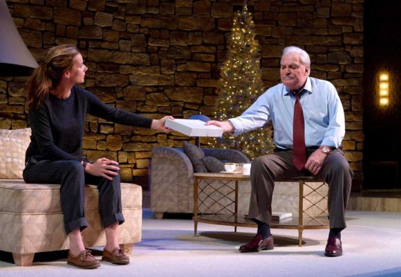 Our play is set primarily in 2004 — close enough to 9/11 for that to be an easy and painful political flash point for Republican late middle-aged Wyeth parents Lyman (Stacy Keach) and Polly (Stockard Channing), their more liberal children Trip (Thomas Sadowski) and Brooke (Rachel Griffiths), and Polly’s ex-writing partner sister Silda Grauman (Judith Light). Aunt Silda has now come to live with Lyman and Polly during her continued recovery. Hollywood and entertainment worlds animate this family’s story. Dad was an actor; mom was a writer with her sister; son currently crafts a television reality show; and daughter is a novelist who has crafted a memoir that provides the drama for the story. At this Christmas in Palm Springs, the secularly Jewish Wyeth parents welcome Brooke from a stay at a mental hospital and Silda from a stay in an alcoholism sanitarium. Everyone receives the news that Brooke is going to publish a memoir that will address the core family mystery of an eldest child who died or killed himself as a result of war resistance activities. The family never talks about him; the surviving siblings never knew the truth of their older brother; the adults blame each other; Brooke feels she needs to write the words out to feel the truth of them. And as it turns out, there are things the parents have never discussed before that come out now.