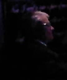 Between sets the social scene at the back of the room is warm — the cabaret world as the theatre world more generally is intimate, familiar, supportive. Many in attendance are extended family by blood and by association. Many individuals are familiar to me from other jazz and cabaret events I have attended. A few people (such as Rex Reed, pictured at right through the dim light of the high energy second set) familiar to me from many years of reading about Hollywood and Broadway. I find my corner, refer to my set list, and settle in.