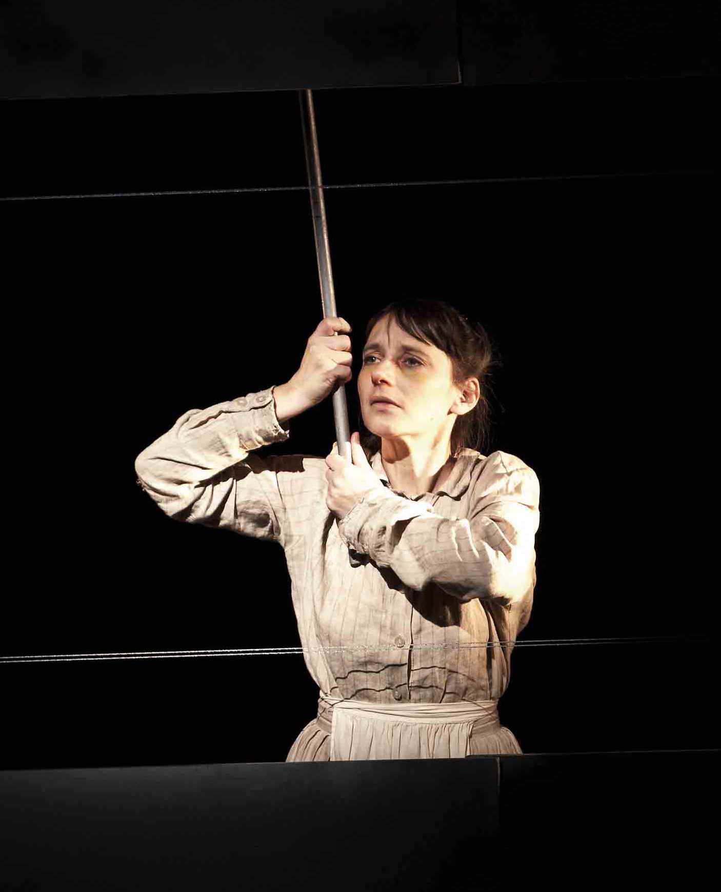 Physically mobile set pieces and curtain wall sections merge with emotionally and intellectually and historically moving words and situations inTake What Is Yours at 59E59, a story of a phase of the women’s suffrage movement in the United States. Erica Fae and her colleagues have crafted theatre from history, gymnastics on stage from gymnastics of historical political logic. Projections with pieces of legislation and images of protest merge sometimes haltingly with the live storytelling, accumulating power as the physical vocabulary and the flavor of this artistic team’s style becomes more apparent. Not quite mime, not quite dance, not quite straight historical biography — this is history of the U.S. women’s suffrage movement during the early years of the 20th century. And it is entrancing theatre.