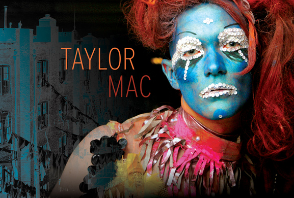 Taylor Mac is bursting with love for all of humanity. “As a theatre artist, I think of myself as a community organizer,” he tells us. And by the end of our experience this evening in the basement theatre of the Manhattan Jewish Community Center we have indeed become a community in spirit and in fact, by our choice and by his charm. We are part of his sequential workshops building toward a 24-hour event he envisions will happen sometime late next year — 24 hours to honor the history of American popular song. One hour for each of the decades of the life of America as a country. This evening, Taylor tells us, is the 7th or 8th such workshop, and tonight we’ll be exploring the music of the New York tenements. Some tunes written by people who once lived in them; all are tunes, Taylor Mac envisions, that would have been known and sung and enjoyed by the people who lived in the Lower East Side of Manhattan in the years 1900-1909.