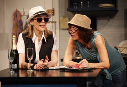 Theresa (Lynne Wintersteller) has been a hermit for a few months in her long time West Village apartment after losing her job at an unnamed foundation — an event that occurred, we eventually learn from Theresa, after an unbelievable melt down featuring a nasty, stereotypical, and public cat-fight with a younger female work colleague. Her old colleague chum from NYU days Pam (Nancy Johnston) lets herself in with keys she has long held, surprising Theresa as she consoles herself by listening to the sappy 1975 hit “Wildfire.” (Full disclosure: I hated living through the 1970s the first time and the fact that the dramatic, thematic, musical symbolic crux of this play relies on one of the many musical earworms of that musically dismal era does my reaction to the drama no huge favors). Pam, who moved after college to Ohio with her husband, raise a family, and has yearned for her youth in the big city ever since, has been visiting Theresa and this apartment for decades for her City fix. Both women have life events to share — Theresa has reason for her firing and her thoughts of moving and Pam has a medical condition requiring treatment.