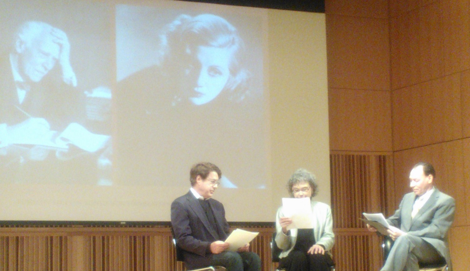 4 June 2012. (L-R) On screen: Konstantin Stanislavsky, Stella Adler. On stage: Mel Gordon, Joanna Rotte, Ronald Rand. Image by Martha Wade Steketee.