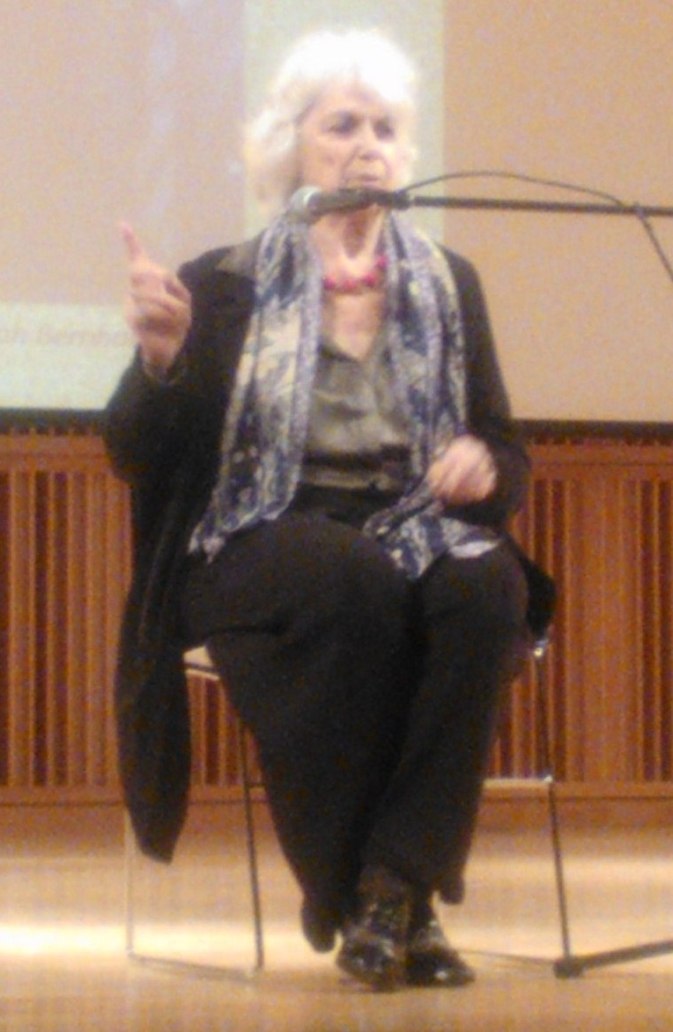 As in the section on Strasberg, we move into another enactment — these are actors and theatre historians, of course we’ll have additional dramatic readings.  Drawn from notes and letters documenting from two distinct perspectives, we hear Stella Adler and Konstantin Stanislavsky and Herald Clurman on the topic of their 1934 meeting in Paris.  Actress Joanna Rotte comes up from the audience to read Stella Adler’s 1934 notes on her meeting with Stanislavky — “It was Herald who wanted to see him and dragged me along.”