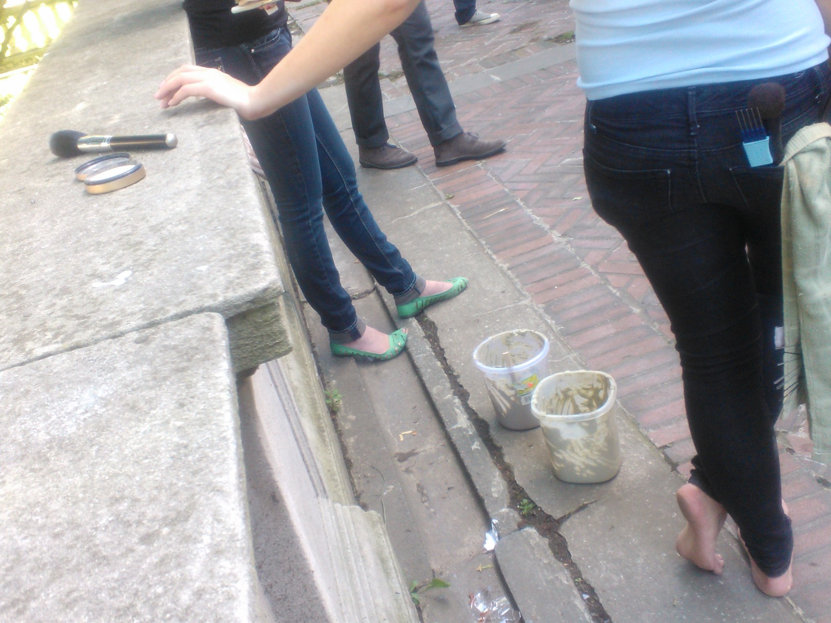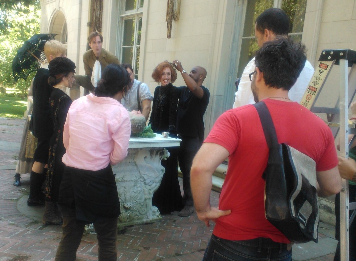 The location was rented for the day and everyone volunteered their time — including makeup artists, wigmakers, costumers, photographers, director Trip Cullman, beautiful actors. The possibilities are great, the energy high, the location beautiful, the promise full. I am breathless with anticipation. What follows are my own amateur snaps, attempting to capture some of the misty wonder of this day and these generous professional artists creating some delightful original art before my eyes.