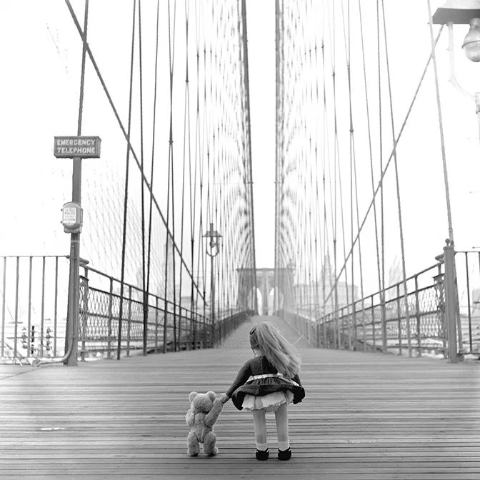 Image of the doll Edith and her friend Little Bear on one of their Manhattan adventures in Dare Wright’s photo-essay-as-children’s-book The Lonely Doll (1957).