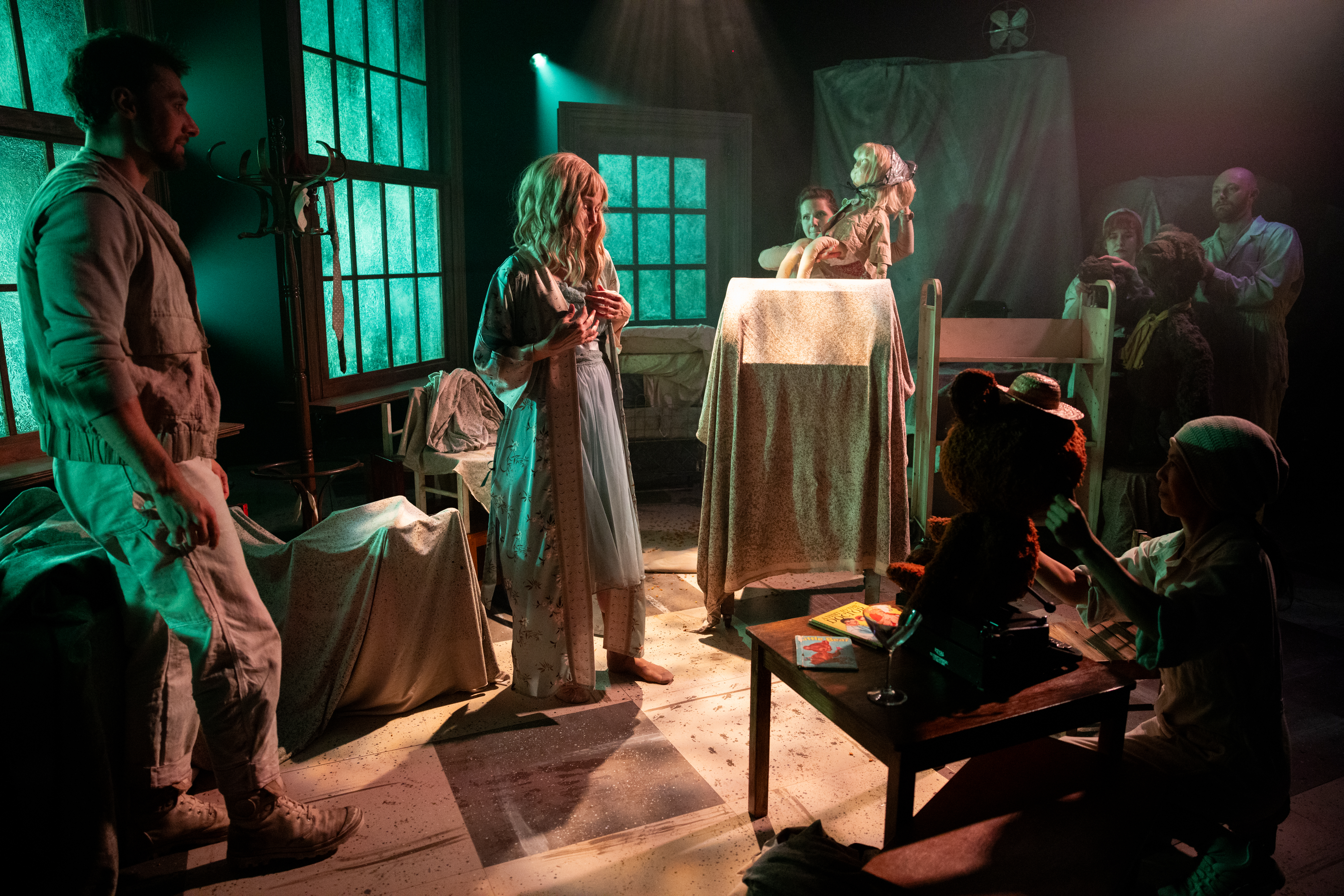 The melancholy musings of Small Acts of Daring Invention, as with the book that inspired it all, are contemplations of memory and loss and inspire wonder. I do question whether an audience member unfamiliar with the source materials or facts of the author’s life would easily enter the magic world Weller has crafted with her design collaborators (set components by Christopher and Justin Swader, costumes by Natalie Loveland, subterranean sun-through-dusty-windows lighting by Daisy Long, lighting, and puppet design collaborators at Simple Mischief Studios). Regardless, the themes resonate, as if this were a dance production.